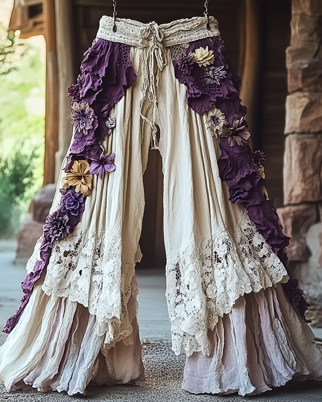 Pantalon taille haute imprimé rétro pour femme,